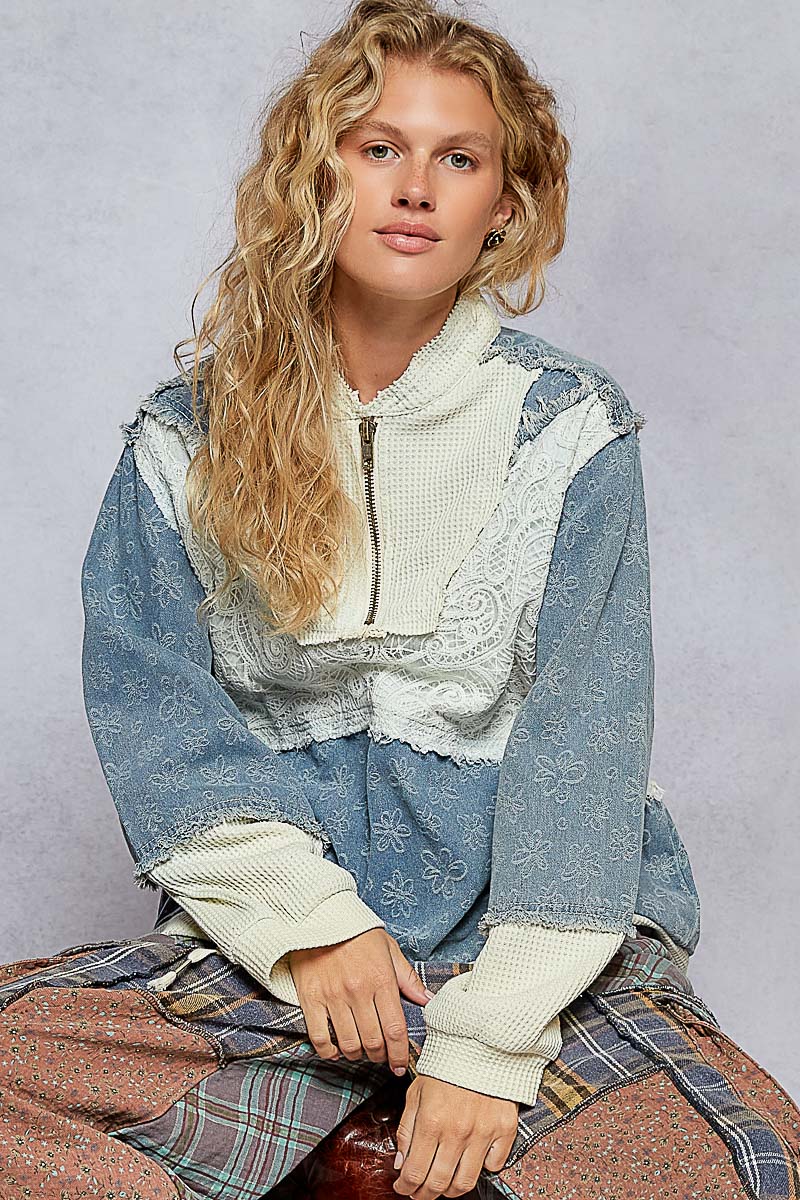 Designed in half zip up, balloon sleeve, relaxed fit