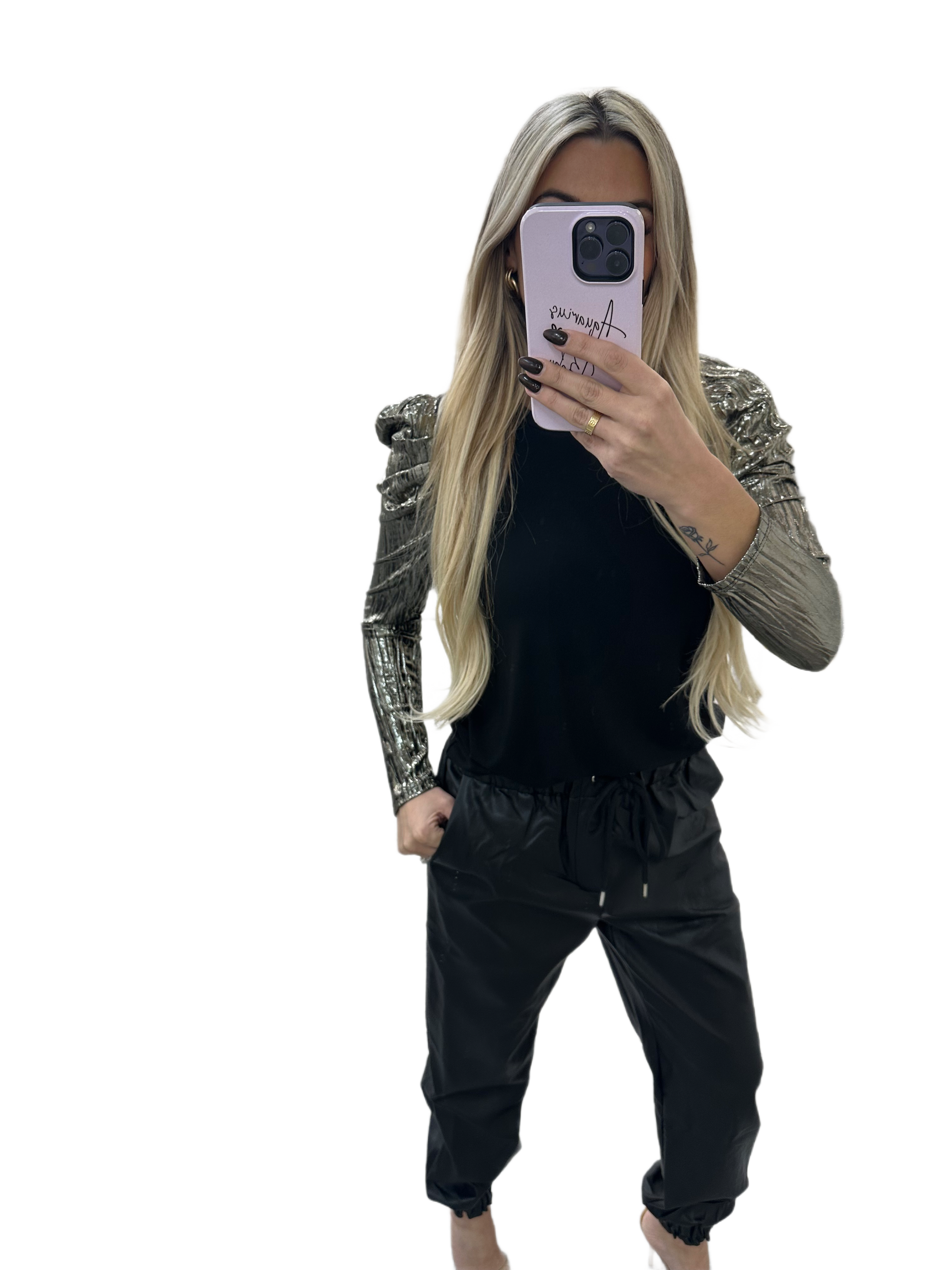 Black contrast sleeve full length