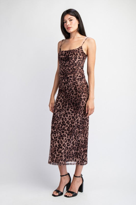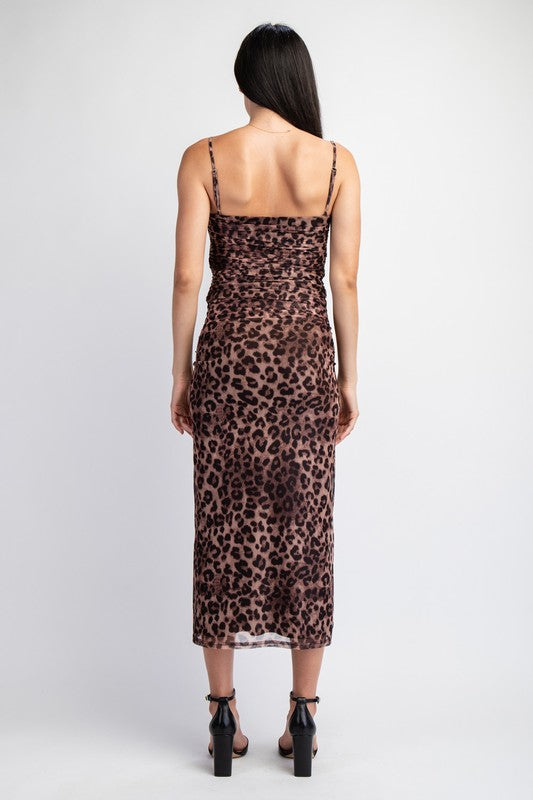 LEOPARD PRINTED MESH SHIRRED CORSET TOP WITH INNER WIRES
