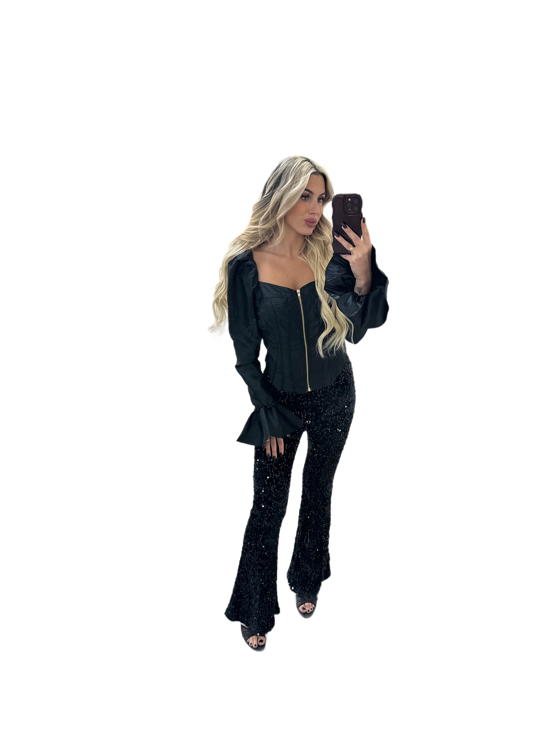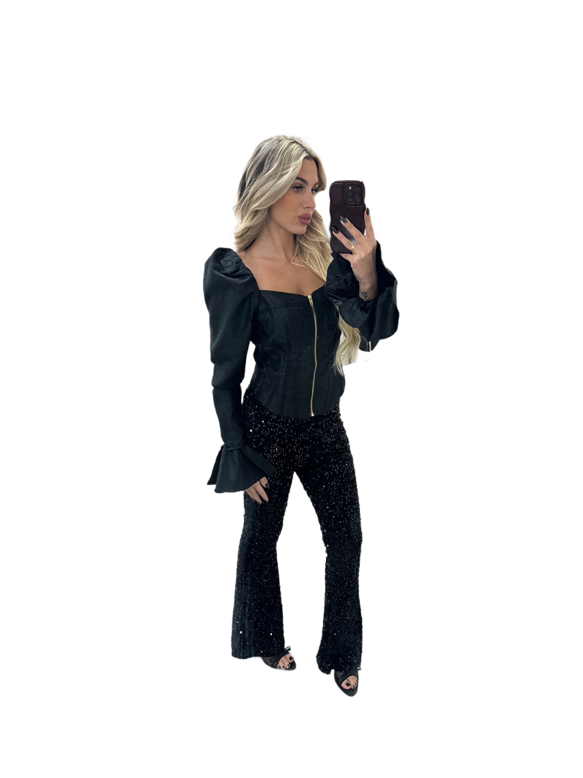 Long Puff Sleeves Fluted Cuffs Corset Top