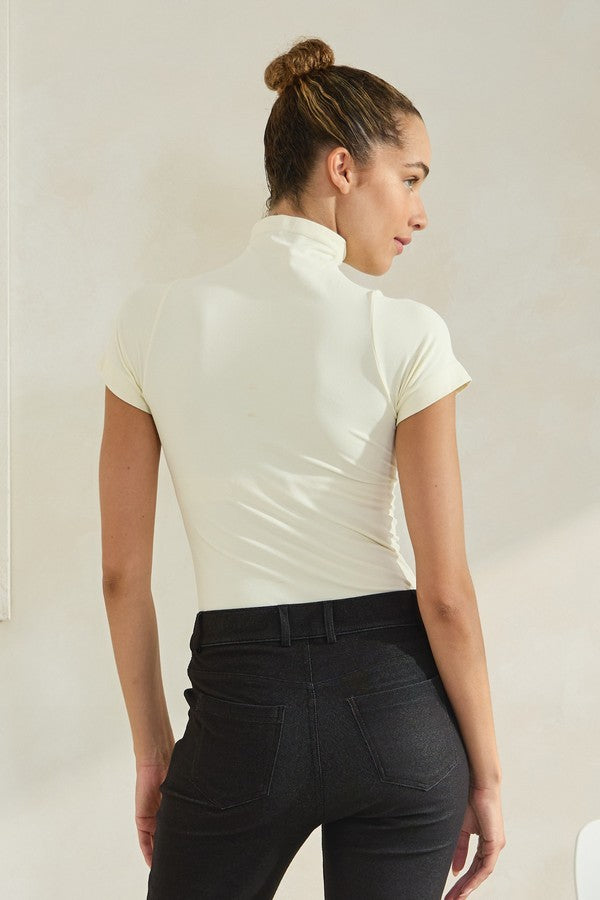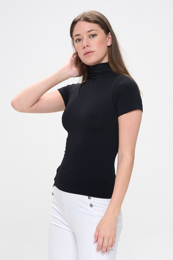 Smooth, bold, and essential. With warmer weather approaching, it's time to embrace light layers. This mock neck top is a must-have for the upcoming seasons. Pair it with your favorite jeans and add a chic blazer for a timeless look!