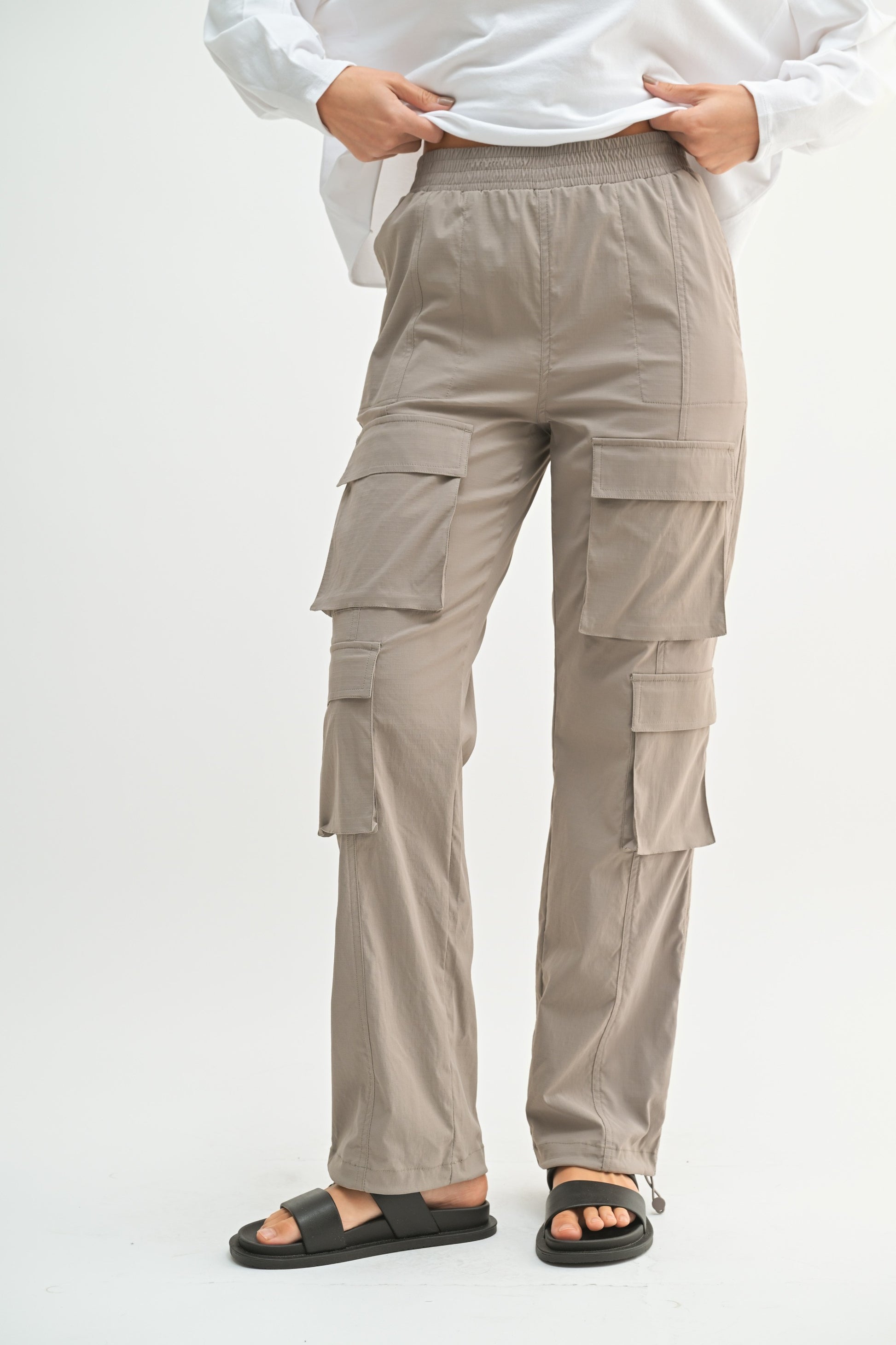 Stay cool in cargo with our utility style pants. They're constructed from a durable stretch rib stop fabric and are water resistant so you can take on any terrain. The oversized utility pockets on the leg and the large hand pockets at waist ensure amble storage while the adjustable bungee at the hem and elastic waistband allow the wearer to customize their fit