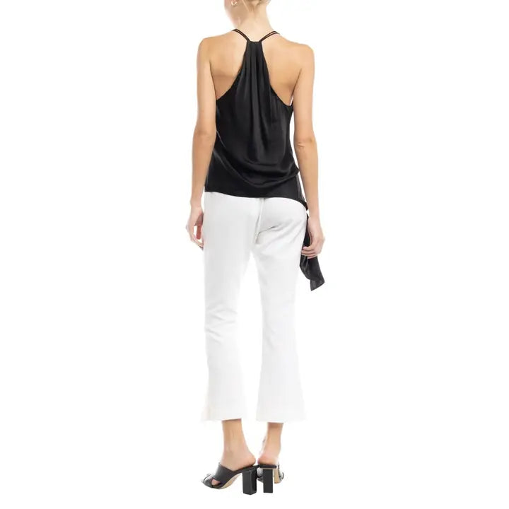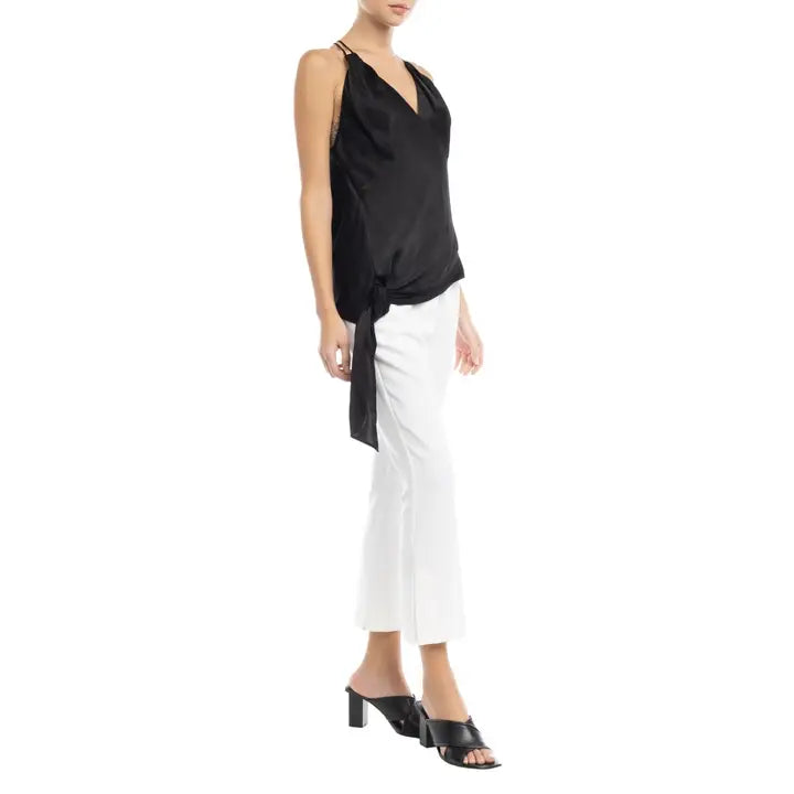 The double strap racerback design adds a sporty and modern touch, while the waist tie provides a flattering and customizable fit. Perfect for chic and casual looks, this cami effortlessly combines contemporary style with the unique aesthetic of Lost April.