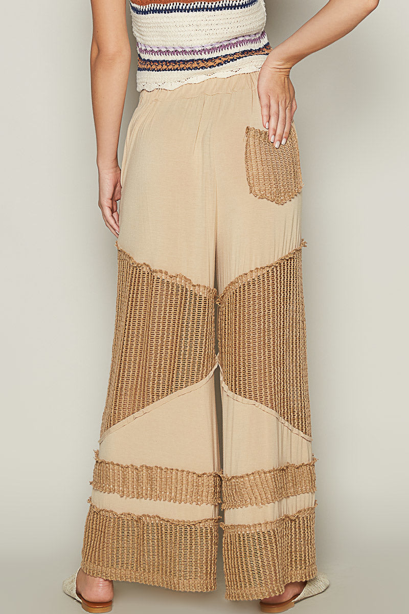 Designed in wide pants featured in Pol's jersey and see through woven, elastic waistband