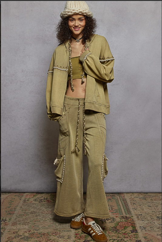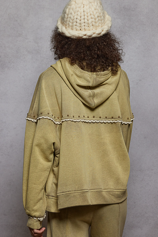 Designed in hooded long sleeve relaxed fit jacket in French terry with stud & trim.