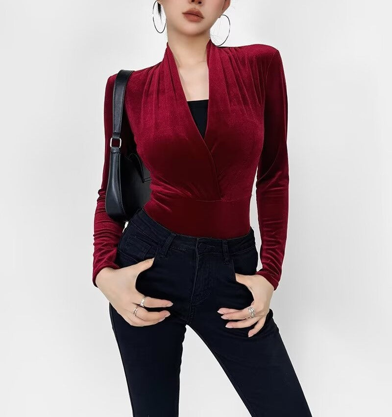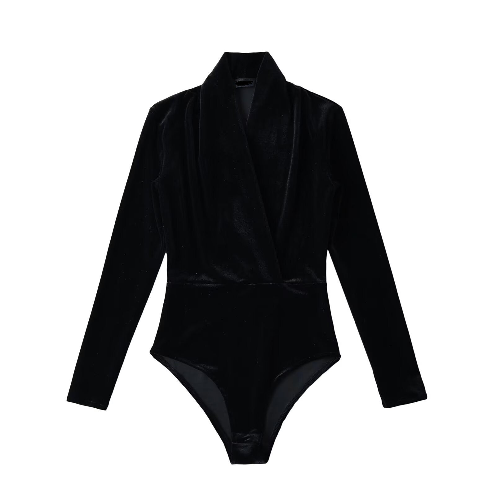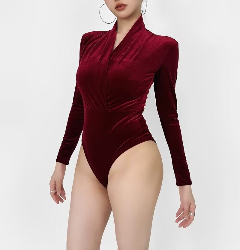 Black surplice velvet bodysuit